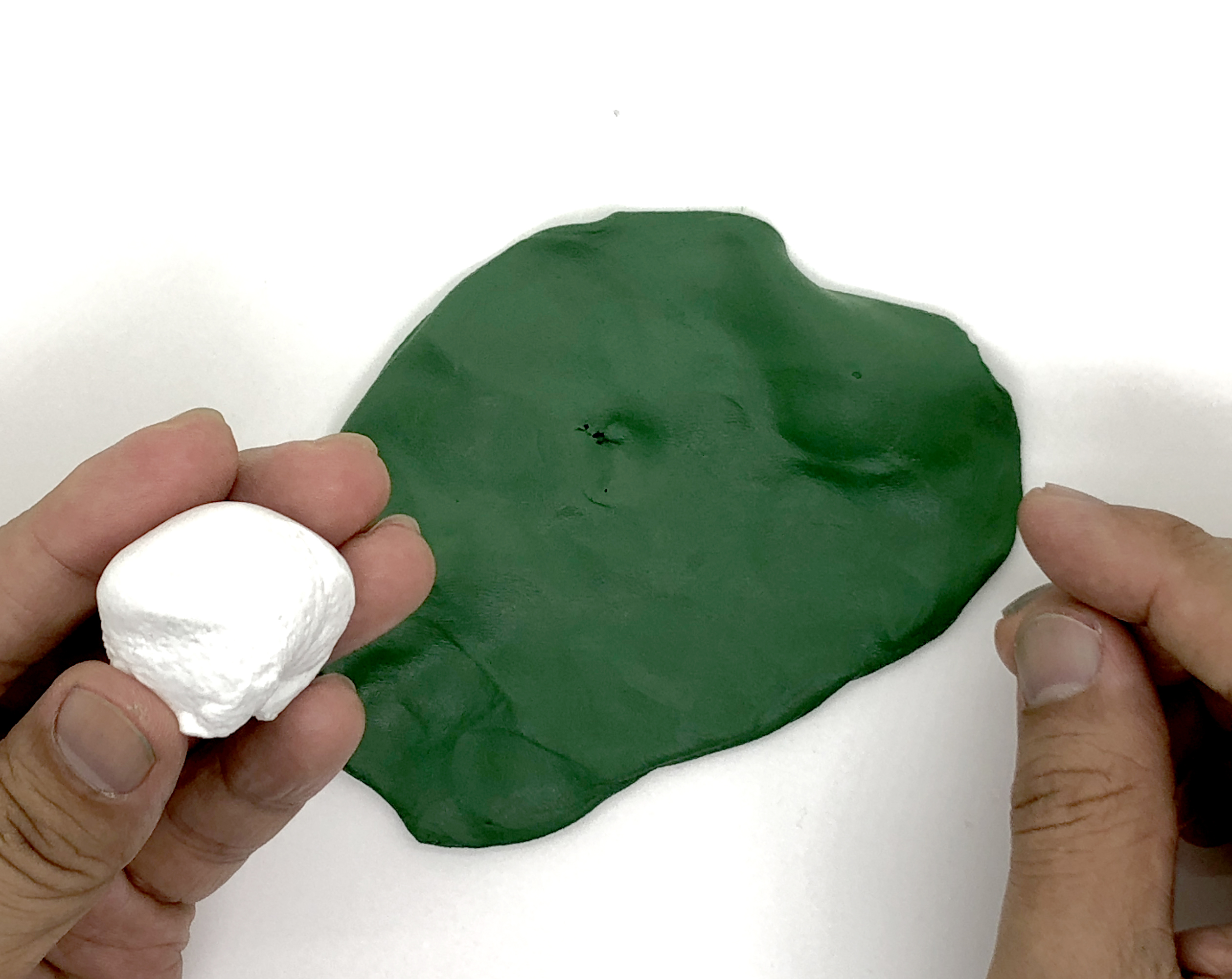 トリケラトプスの作り方1、ミドリ粘土1本全部に黒の玉7mmを混ぜて少し黒っぽくする。2、よくこねたら白粘土の玉30mmも足して量を増やす。3、よくこねて色ができたら半分より少なめをまん丸の玉にする。残り...